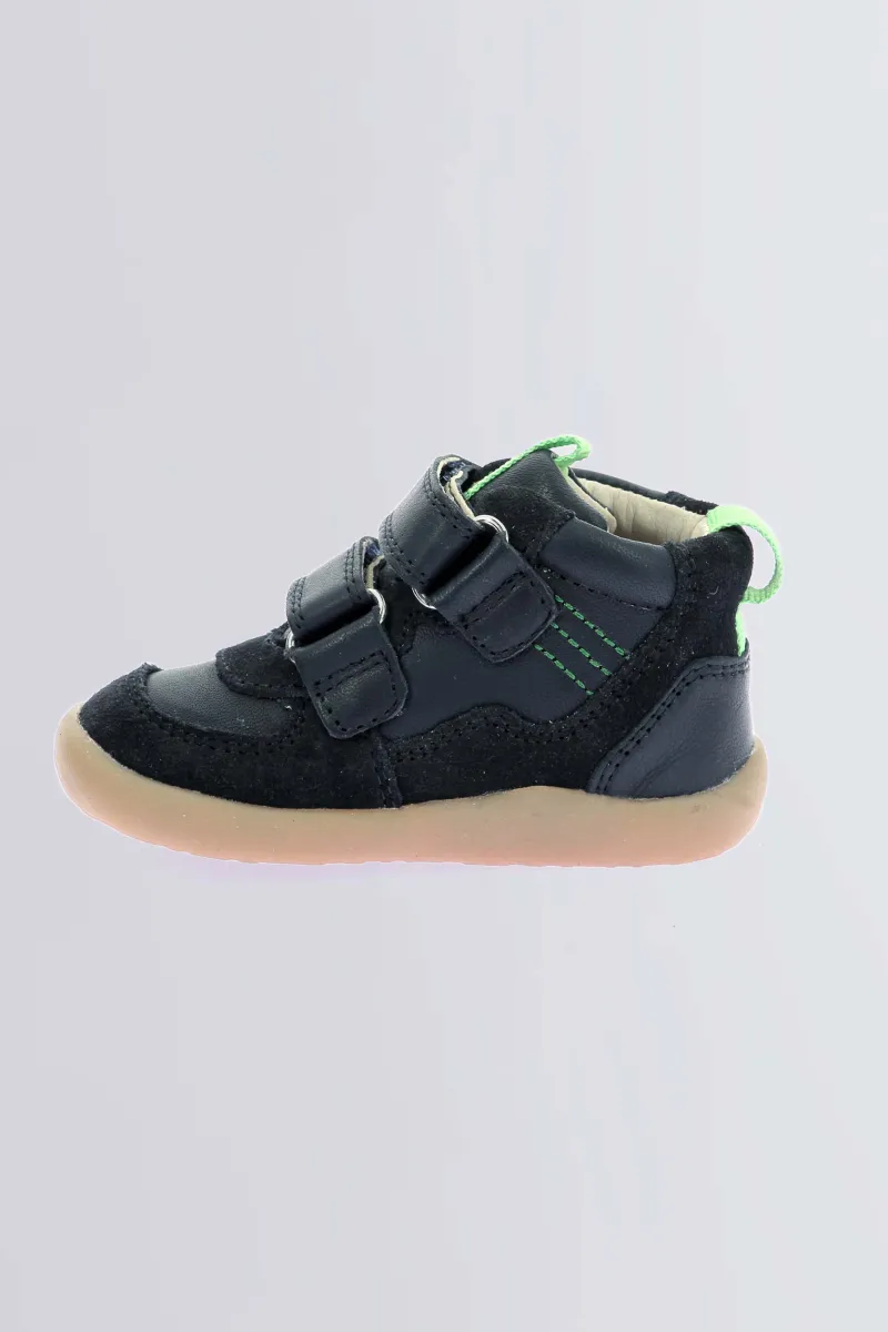 Les baskets montantes pour bébé garçon Kickfresho allient design épuré et praticité. Leur cuir bleu marine apporte une touche contemporaine, parfaite pour un look casual chic dès le plus jeune âge. Grâce à leurs deux scratchs, elles s’enfilent en un clin d’œil et s’ajustent parfaitement, pour un maintien sécurisé.
