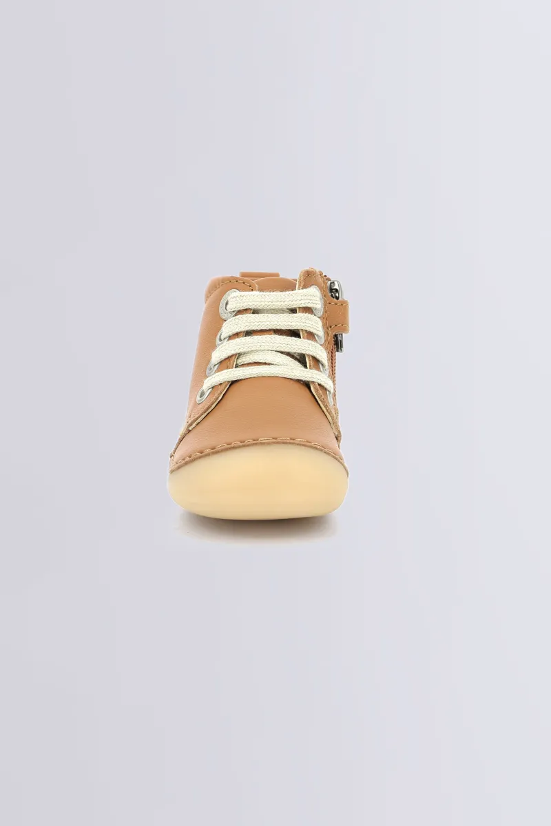 Avec leur teinte camel ultra tendance et leur design minimaliste, les bottillons pour bébé Sonizip signés Kickers sont le mix parfait entre confort, qualité et style. Idéal pour accompagner les premiers pas avec une touche naturelle et intemporelle.