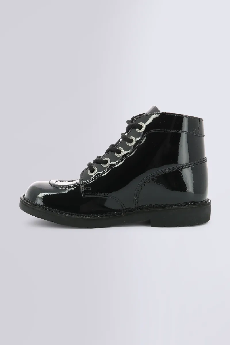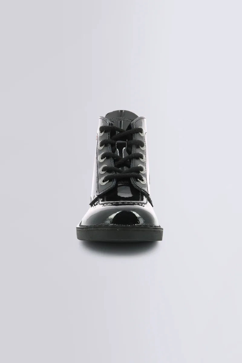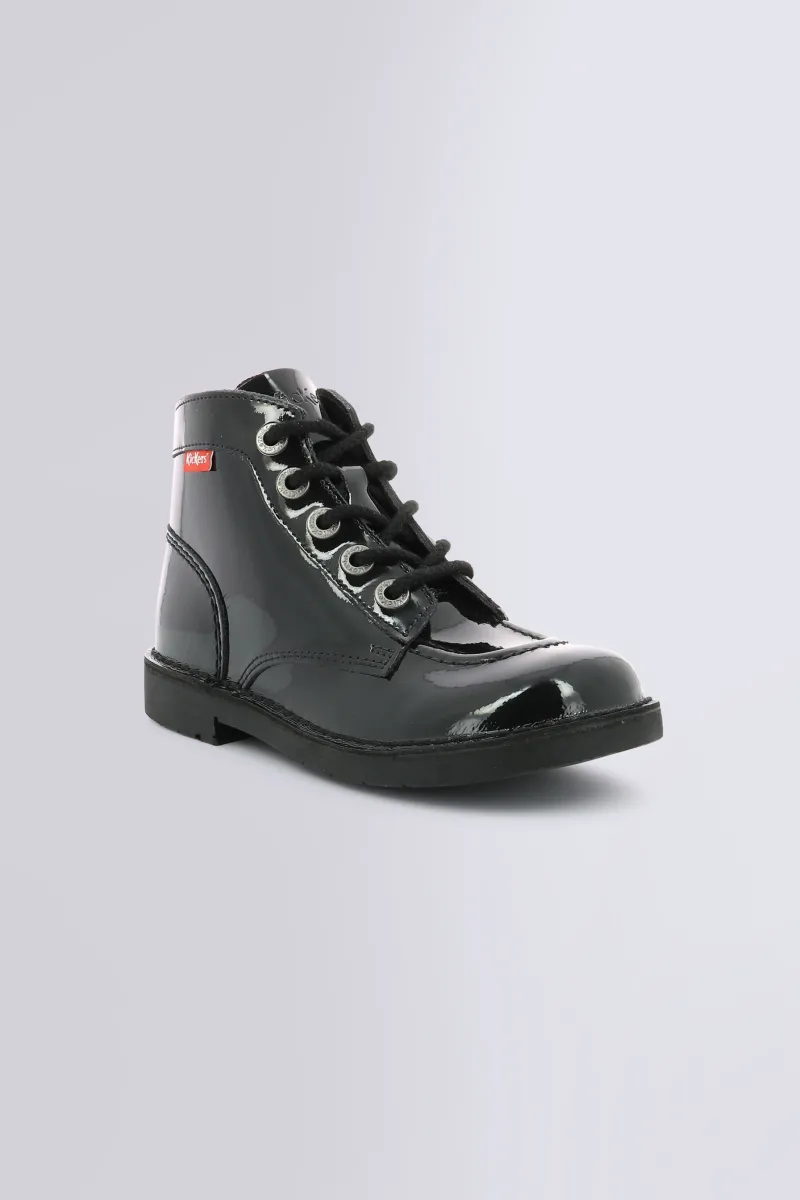 Avec leur cuir vernis noir, les Kick Col revisitent l’iconique bottine Kickers dans une version ultra brillante et stylée. Du 24 au 42, elles s’adressent à toutes et tous : bottines pour fille et garçon, mais aussi bottines pour femme à l’allure assumée. Leur semelle caoutchouc, leur fermeture à lacets montante et leur finition vernie en font une paire audacieuse et résolument mode.