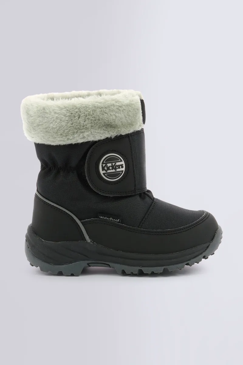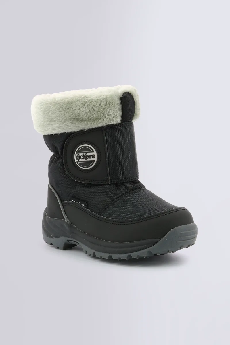 Affrontez l’hiver avec style grâce aux bottes de neige pour garçon Jumpsnow Noir de Kickers. Conçues pour résister aux aventures enneigées, elles affichent un look sobre et moderne, renforcé au bout du pied et au contrefort pour plus de solidité.