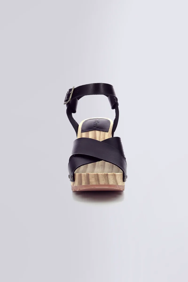 Leur design minimaliste à brides croisées met en valeur le pied, tandis que la bride à boucle assure un maintien parfait. Posées sur une semelle en bois naturel et un talon de 8,5 cm, ces sandales élancent la silhouette sans compromis sur le confort.