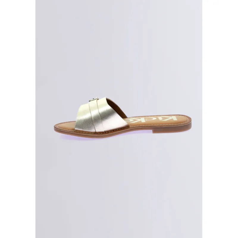 Glow up assuré ! Les mules Kick Diwana dorées signent un look solaire et ultra désirable. Leur bride unique à enfiler dévoile un cuir métallisé or, pile dans la tendance des finitions glossy qui font sensation cette saison. C’est la touche shiny qui relève un look minimaliste ou qui s’assume en total glam avec une robe longue fluide.