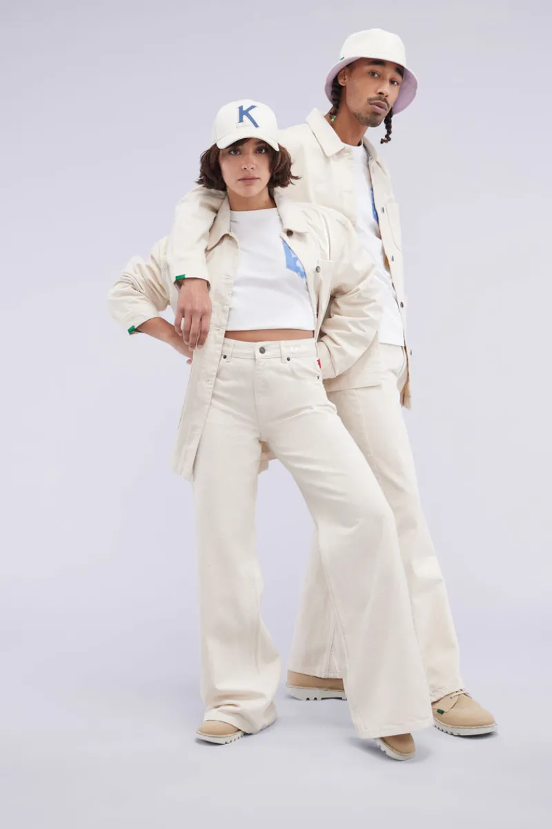 L’identité de la marque est renforcée par les étiquettes contrastées sur chaque manche : verte à droite, rouge à gauche, un clin d’œil emblématique à l’univers Kickers.