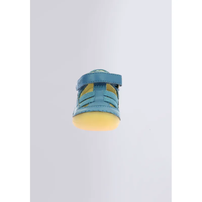 L’emblématique modèle Kick Sushyk se réinvente en bleu, mixant toile et cuir pour un look estival frais et stylé. Pensées pour les filles et les garçons, ces salomés mixtes allient confort et modernité, parfaites pour accompagner bébé dans ses premiers pas avec élégance.