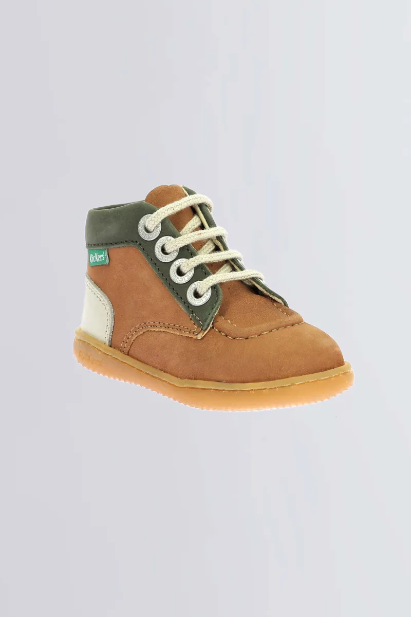 Avec leur design authentique et leurs détails soigneusement pensés, les bottillons pour bébé Kickiconic camel et beige signés Kickers sont parfaits pour accompagner les premiers pas avec allure et confort.