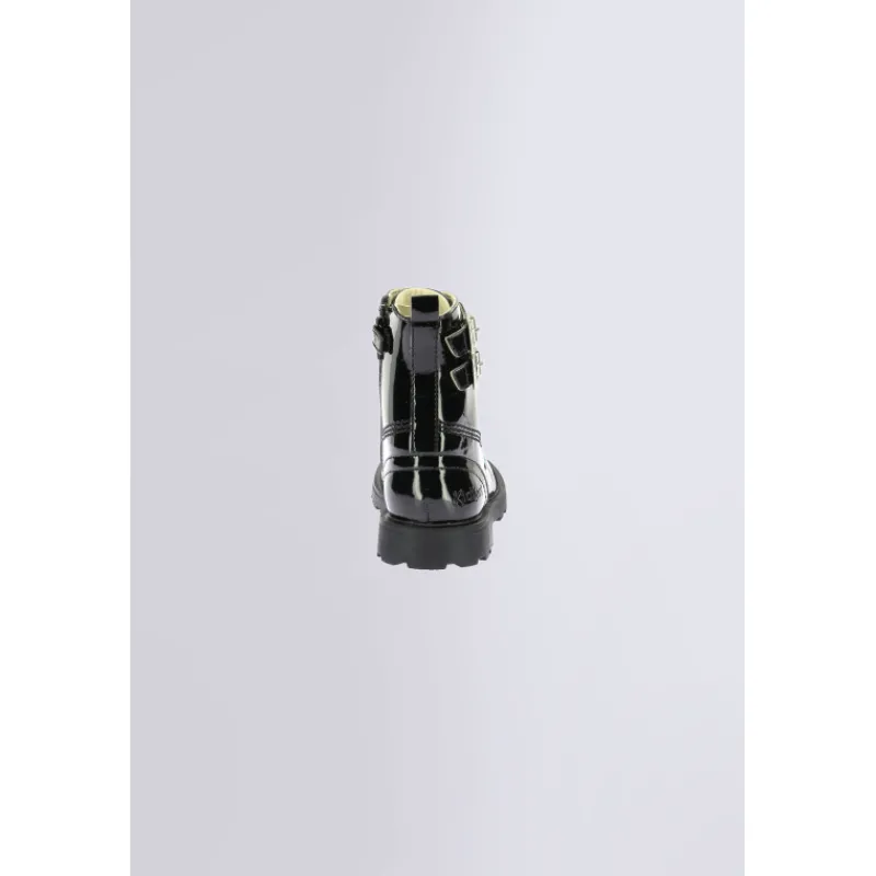 Les bottines pour fille Kick Blush signées Kickers injectent une dose d’audace et de style dans le vestiaire des kids. Leur finition noire vernie et leur silhouette inspirée des rangers créent un look affirmé, entre chic et esprit rebelle.