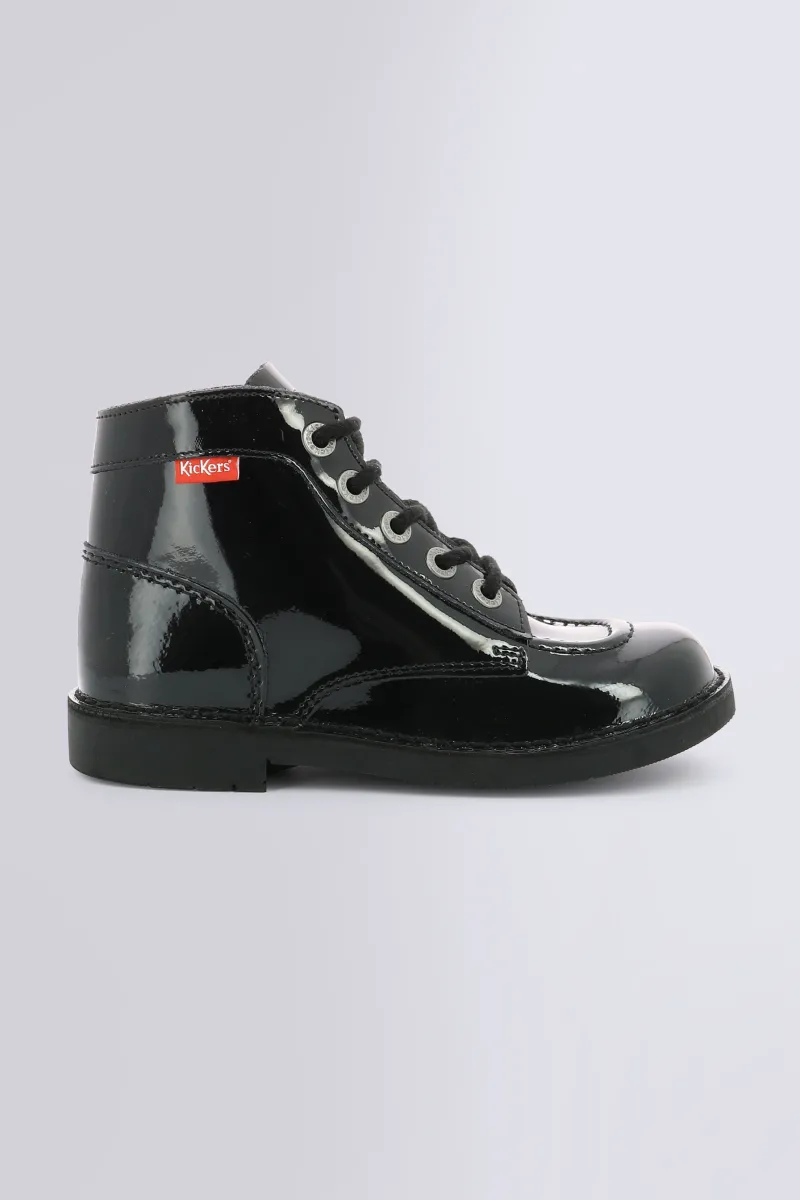 Avec leur cuir vernis noir, les Kick Col revisitent l’iconique bottine Kickers dans une version ultra brillante et stylée. Du 24 au 42, elles s’adressent à toutes et tous : bottines pour fille et garçon, mais aussi bottines pour femme à l’allure assumée. Leur semelle caoutchouc, leur fermeture à lacets montante et leur finition vernie en font une paire audacieuse et résolument mode.