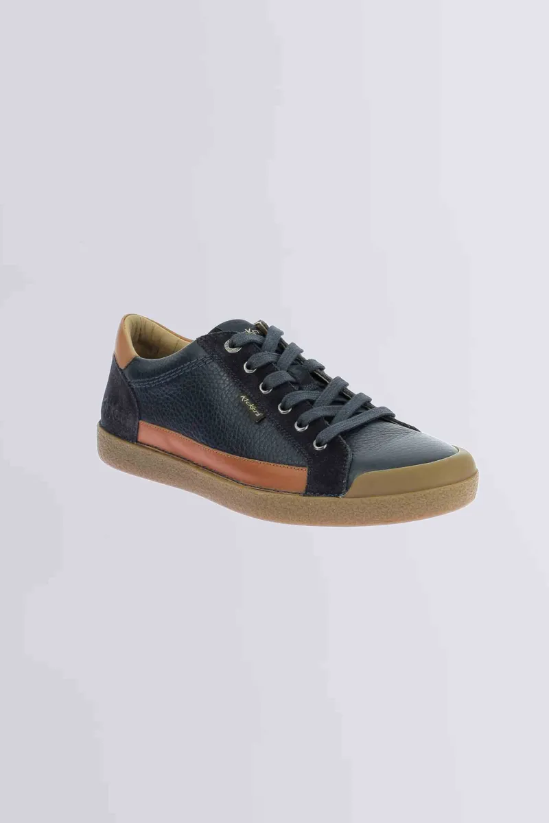 Jouez la carte du contraste maîtrisé avec les baskets pour homme Kick Trainer aux nuances de marine et marine foncé, rehaussées d’une semelle camel qui apporte une touche chaude et tendance. Une palette élégante et versatile pour un look casual chic.
