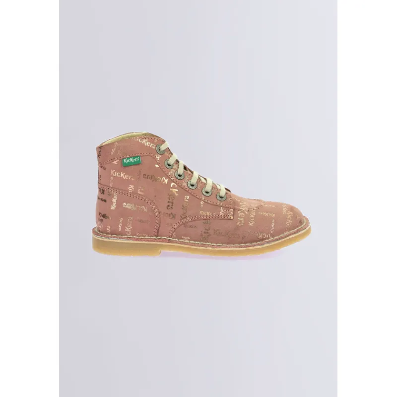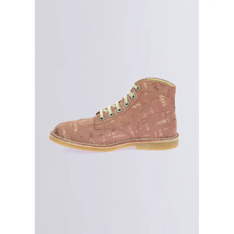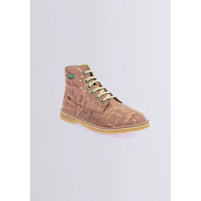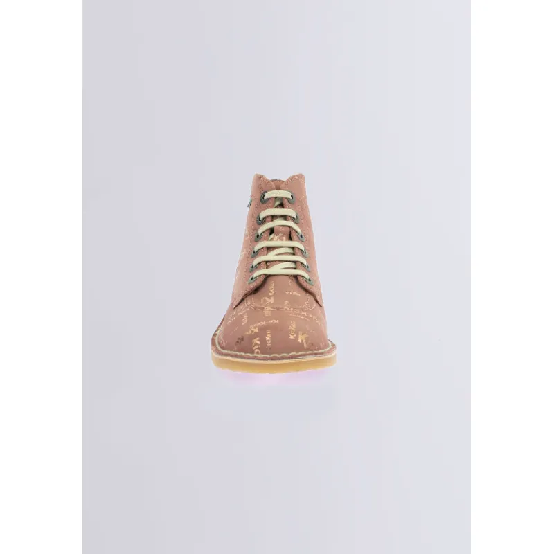 Osez l’originalité avec la Kick Legend. Cette paire de bottines pour femme réinterprète un modèle iconique de chez Kickers avec une touche de modernité et de caractère. Son cuir rose sublimé par l’imprimé du logo Kickers en rose gold, apporte une allure à la fois audacieuse et féminine : parfaite pour celles qui veulent conjuguer originalité et élégance.