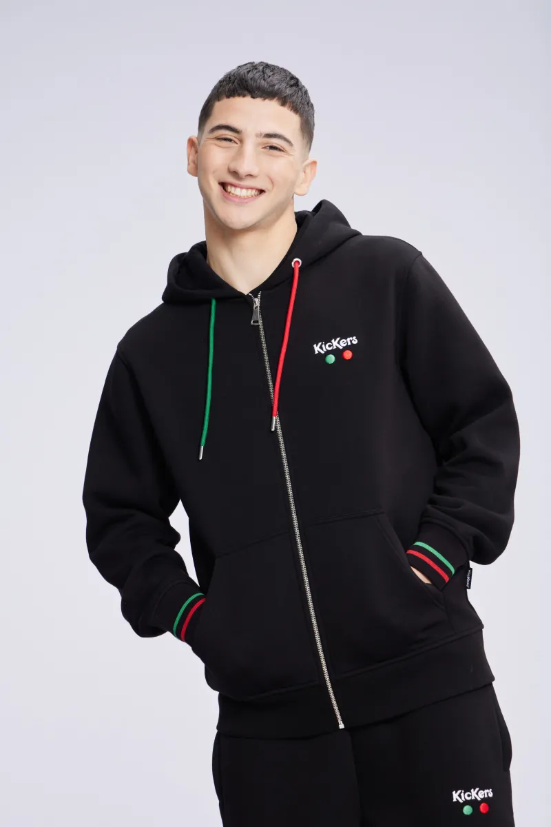 Le sweat à capuche Kick Digger noir en coton est l’alliance parfaite entre confort et style. Sa coupe décontractée et sa couleur noire en font un basique incontournable de votre garde-robe, tandis que ses détails vert et rouge, aux couleurs emblématiques de Kickers, apportent une touche unique. Le cordon de serrage de la capuche et les accents de couleur sur les manches ajoutent du caractère et soulignent l’esprit authentique de la marque.