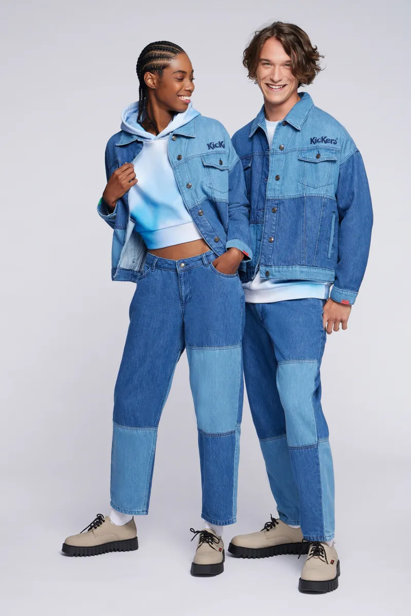 Twist rétro et vibes contemporaines : le Kick Jean bleu revisite le denim avec une interprétation patchwork ultra stylée. Ce modèle unisexe mixe habilement toiles claires et foncées pour un look unique, entre héritage et modernité.