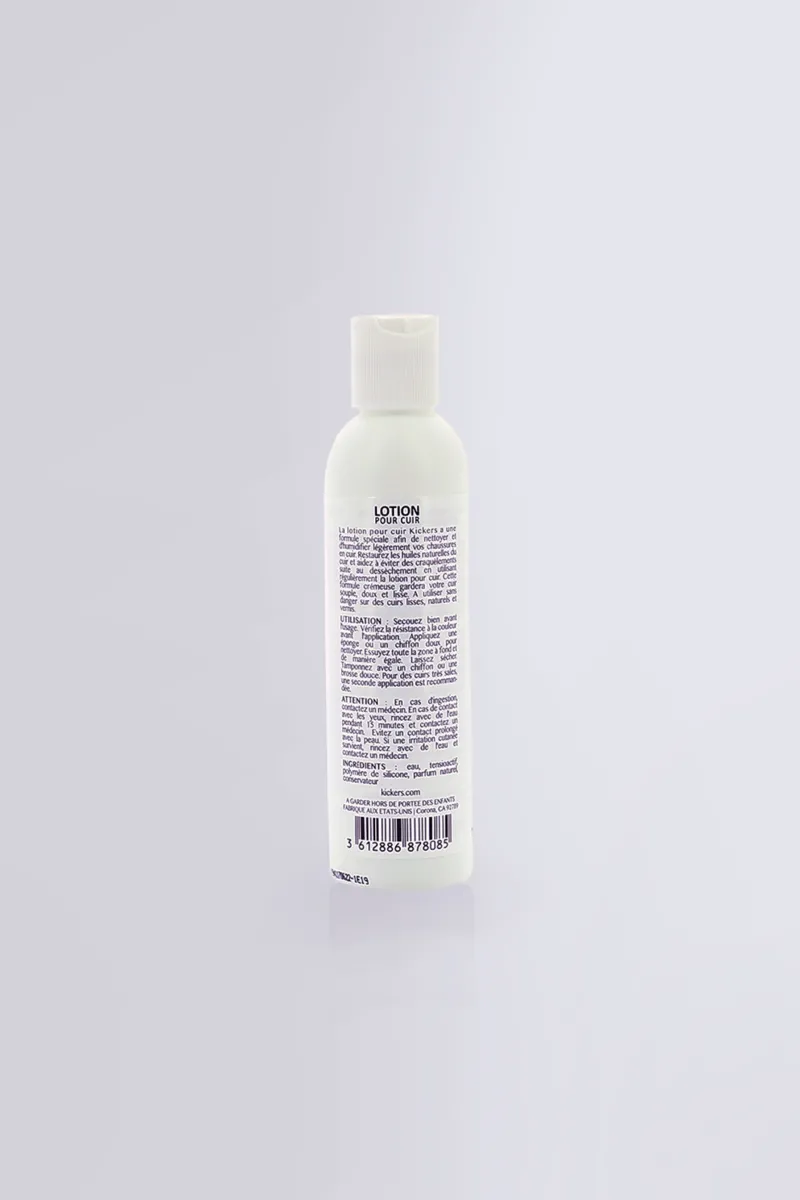 La Lotion pour chaussures en cuir est un produit d’entretien pour chaussures de la marque Kickers. La lotion pour cuir Kickers a une formule spéciale qui permet de nettoyer et d’humidifier légèrement vos chaussures en cuir. Cette lotion restaure les fibres naturelles du cuir et aide à éviter les craquellements suite au dessèchement. Cette formule crémeuse gardera votre cuir souple, doux et lisse. Vous pouvez utilisez cette lotion sur toutes vos chaussures en cuir lisse, naturel et vernis. N’attendez plus pour vous faire plaisir sur le site officiel de Kickers, les retours sont gratuits !