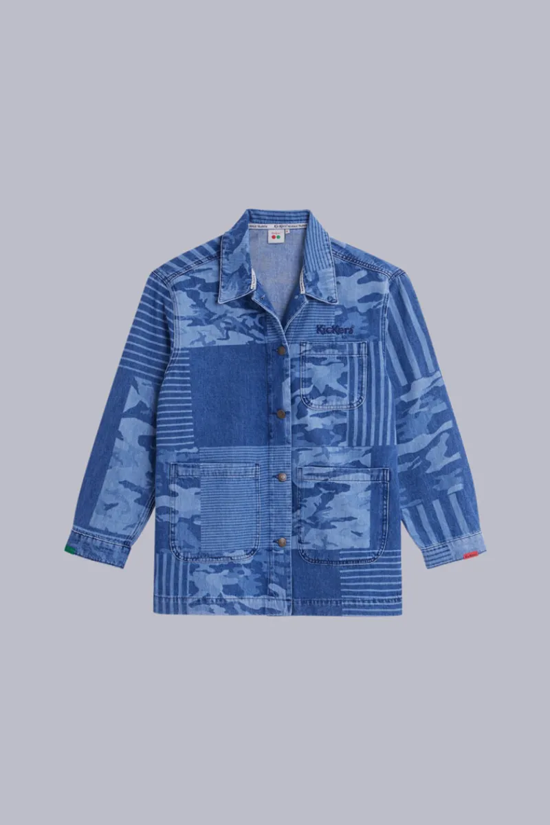 Affiche ton style avec audace grâce à la Kick Jacket, une veste en jean à l’allure workwear qui bouscule les codes. Avec sa coupe droite et son col chemise, elle joue la carte du minimalisme structuré, twisté par un imprimé all over camouflage bleu clair ultra graphique.